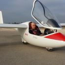 Així doncs, que va ser el moment. En Giovanni Piazza, un dels nostres il.lustres socis italians, ja estava preparat per poder volar en un avió de "plastic" i, amb la corresponent autorització d'en Manel i instruccions previes, va empendre el vol amb el "Piwi". Enlairament perfecte darrera l'avioneta, remolc fins a uns 500 metres, uns minutets de vol lliure i de nou cap a terra. Aterratge perfecte i amb un somriure als llavis.